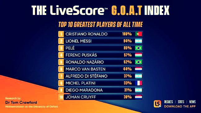 Cristiano Ronaldo crowned the GOAT ahead of Messi and Pele by mathematical study | GiveMeSport